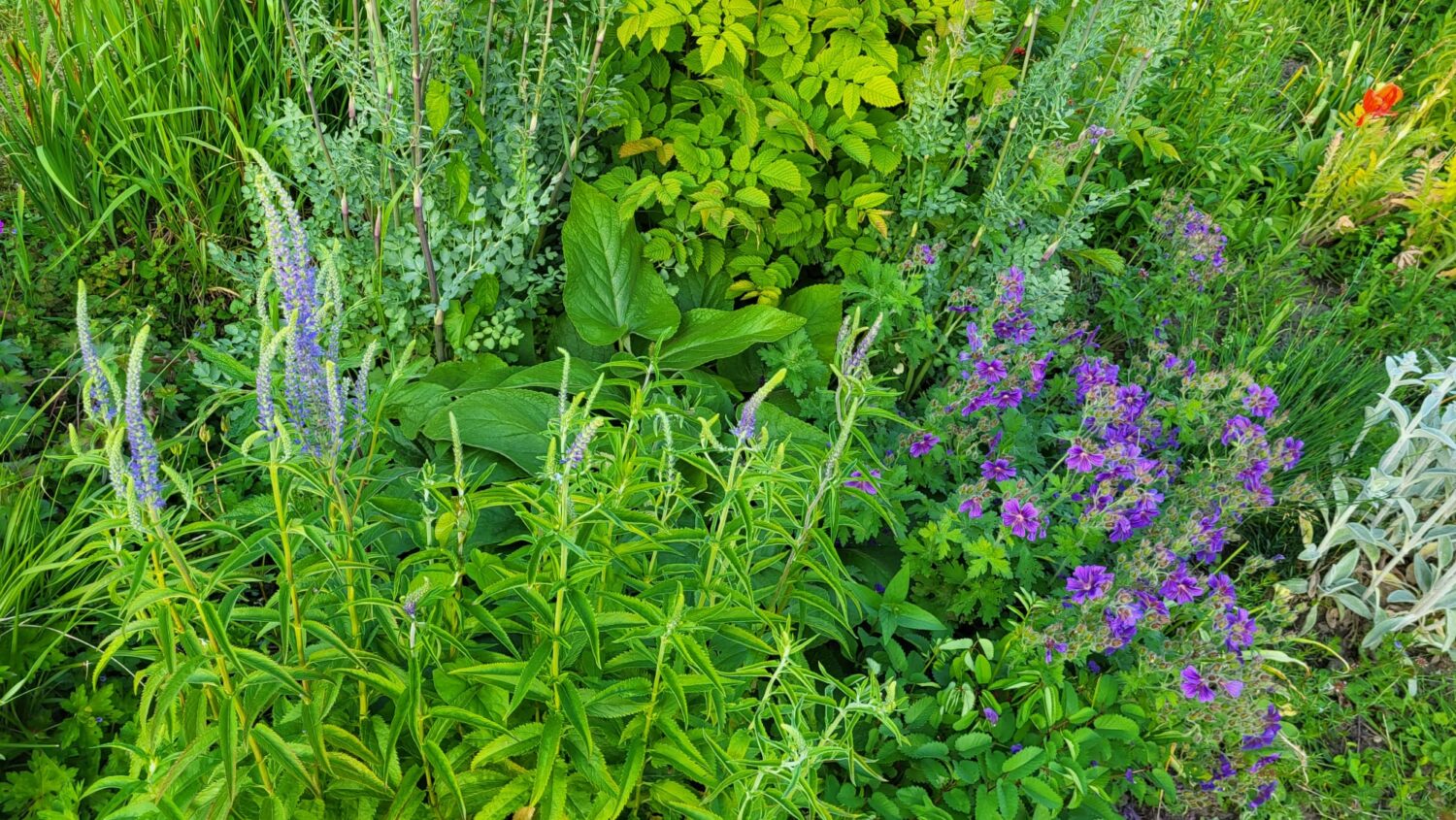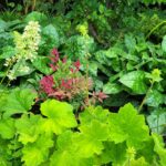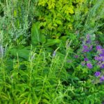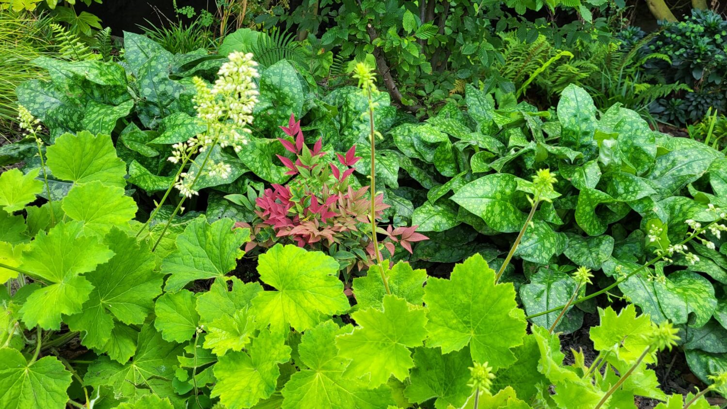* Een schaduwborder met veel verschillende bladplanten;
