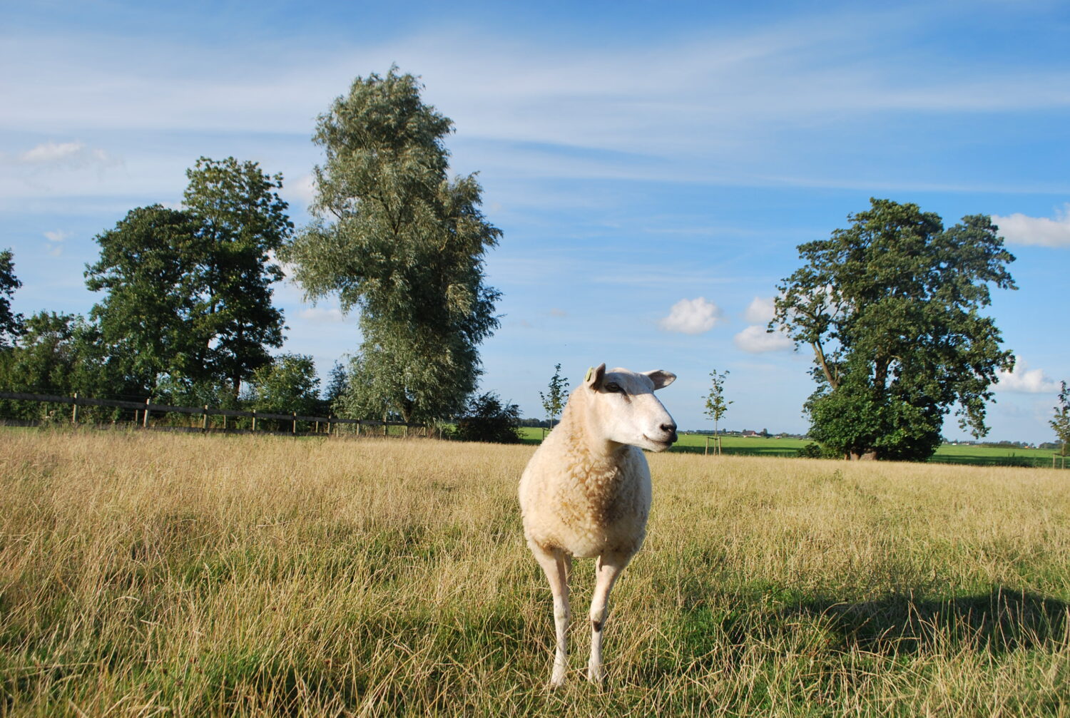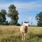 * Struinende schapen in het weiland en scharrelende kippen door de tuin.