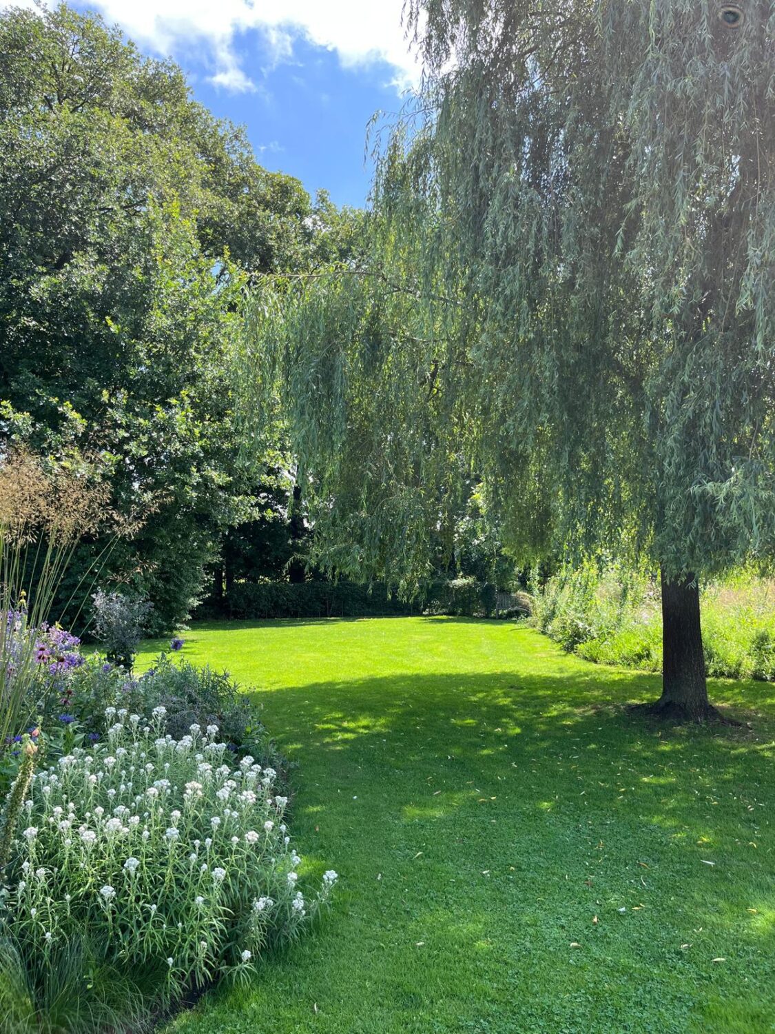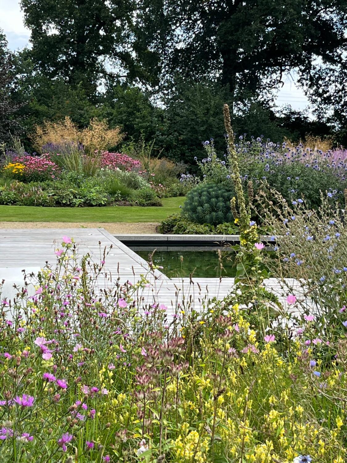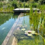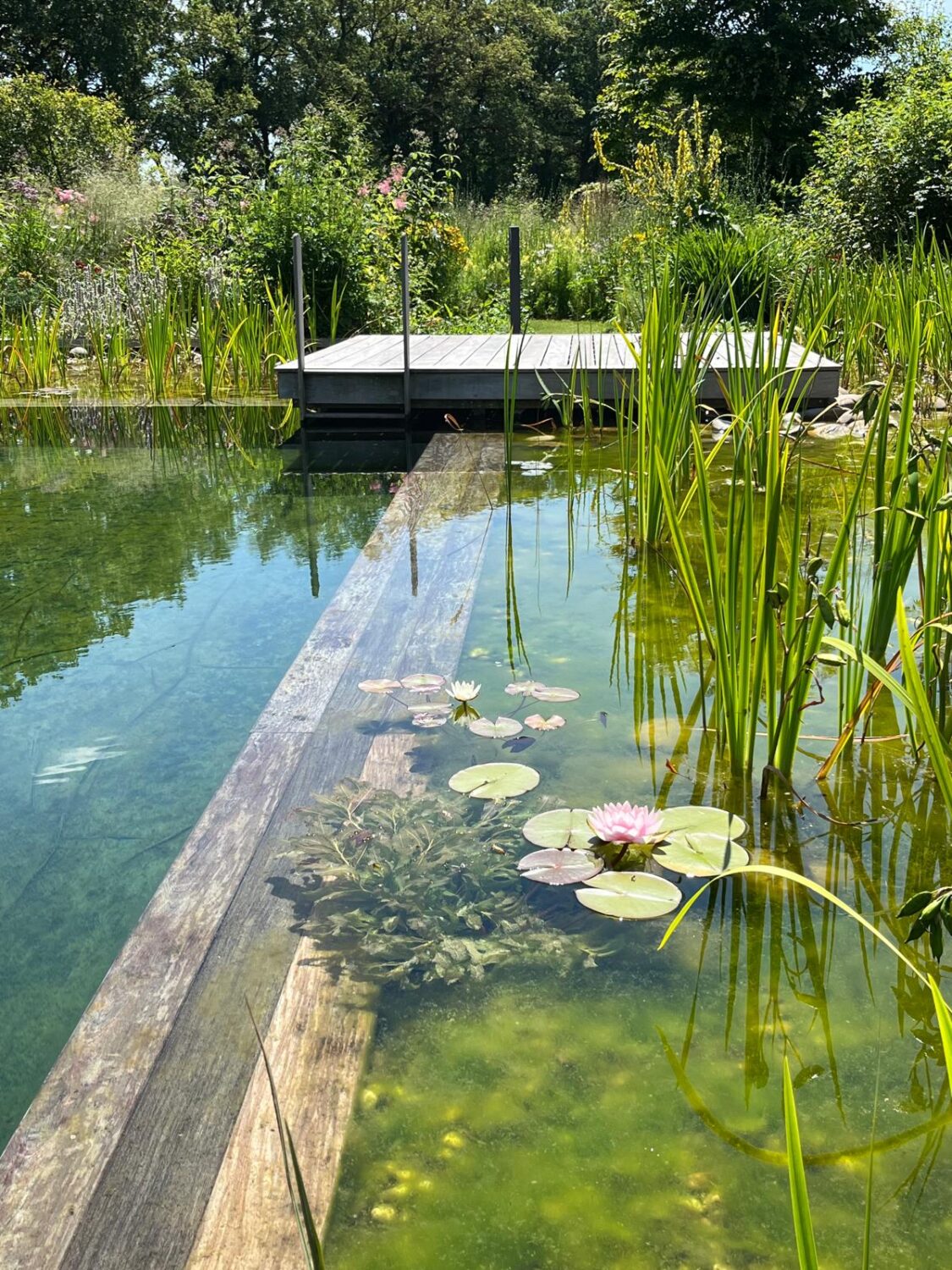 De biologische zwemvijver maakt de tuin een verkwikkende plek.