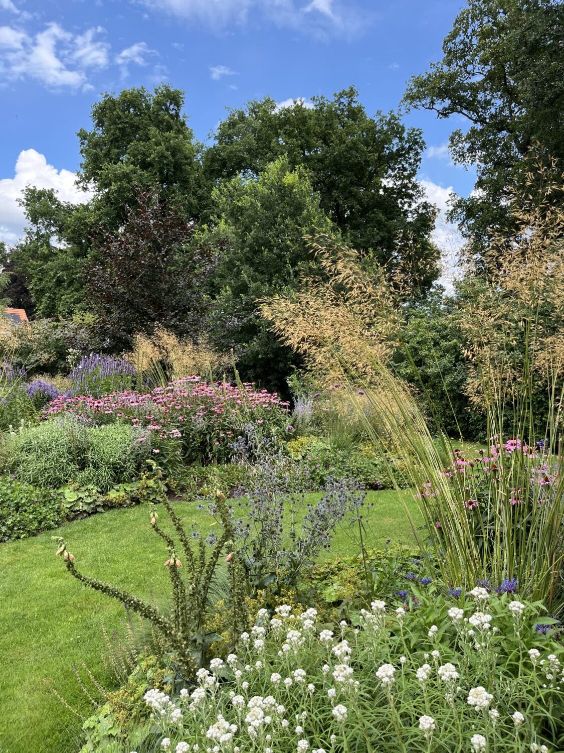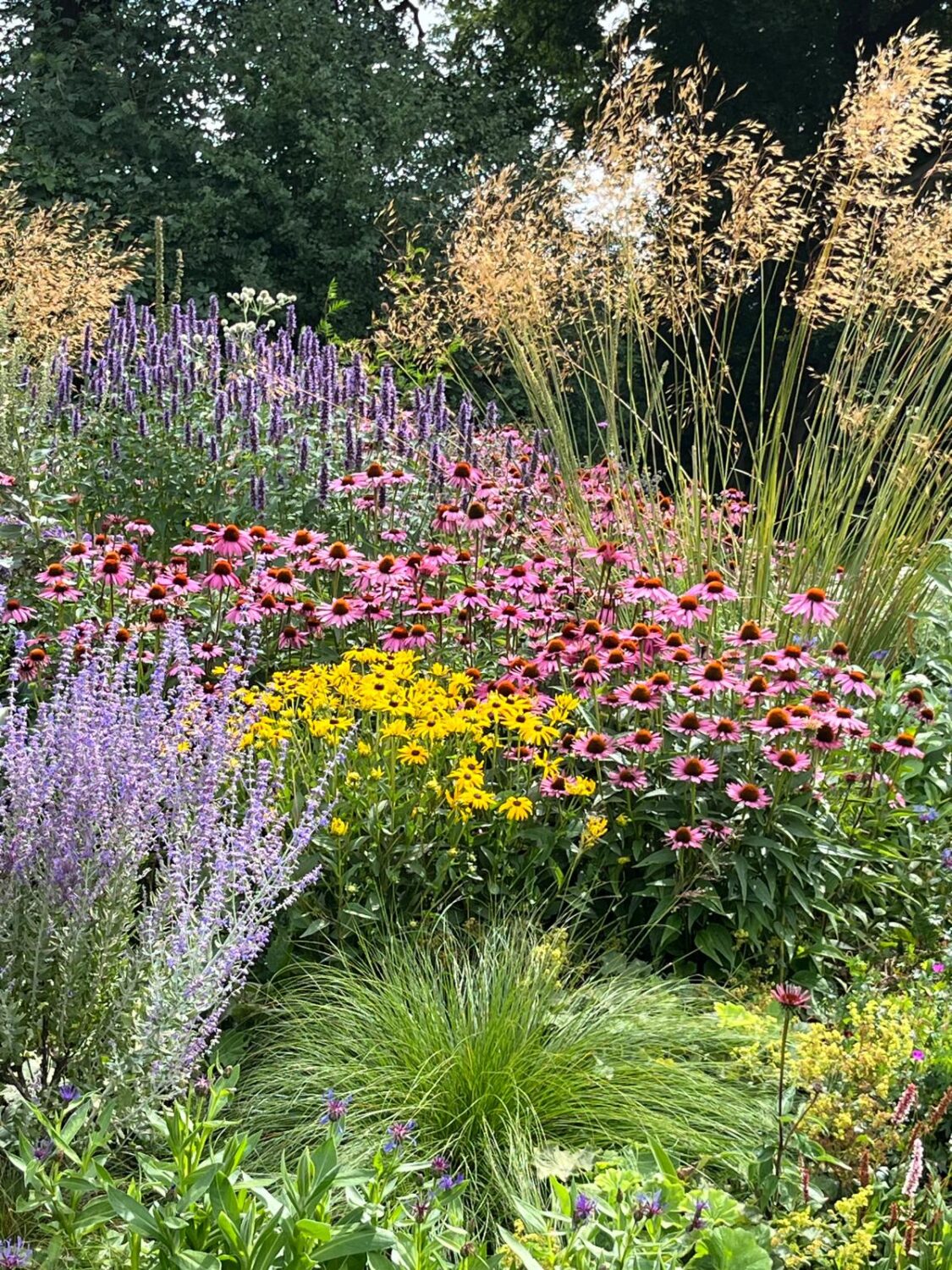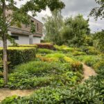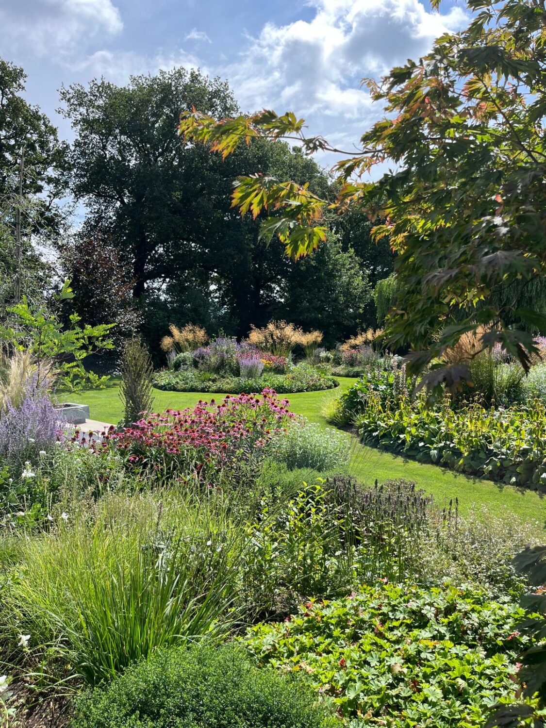De organisch vormgegeven borders zijn ingeplant volgens de Dutch Wave stroming, met een rijke schakering van vaste planten en siergrassen, die elk seizoen iets anders te bieden heeft.