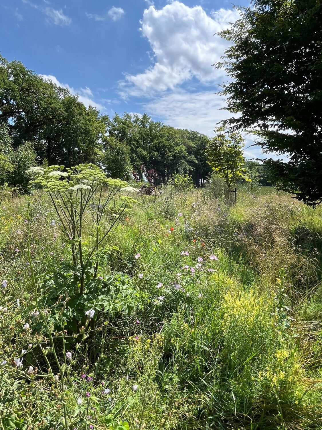 Een nieuwsgierigmakend pad slingert door het gedeelte van de tuin dat is ingezaaid met Heem-kruidenvegetatie. In de zomer en het vroege najaar verweeft de tuin zich daar met het omliggende agrarische landschap, bosplantsoen en struwelen.