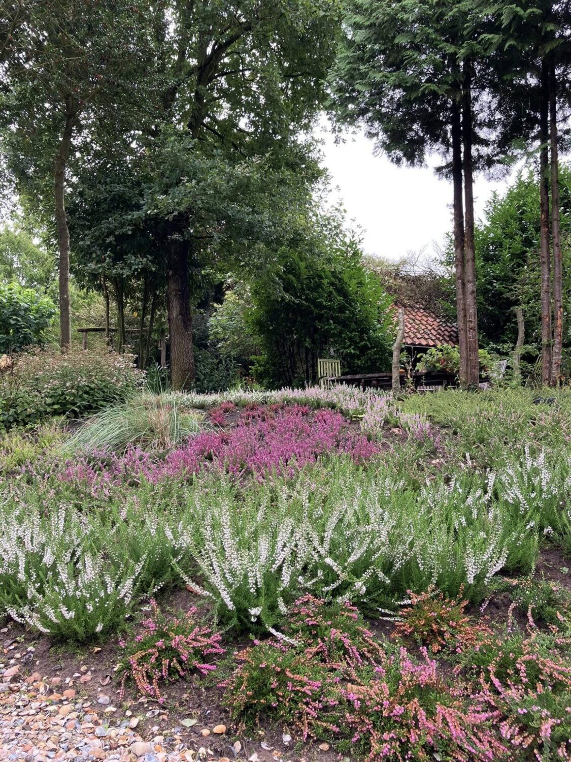In deze kleurrijke natuurlijke tuin zijn ook diverse zitjes en volières. Oppervlakte 7000m²