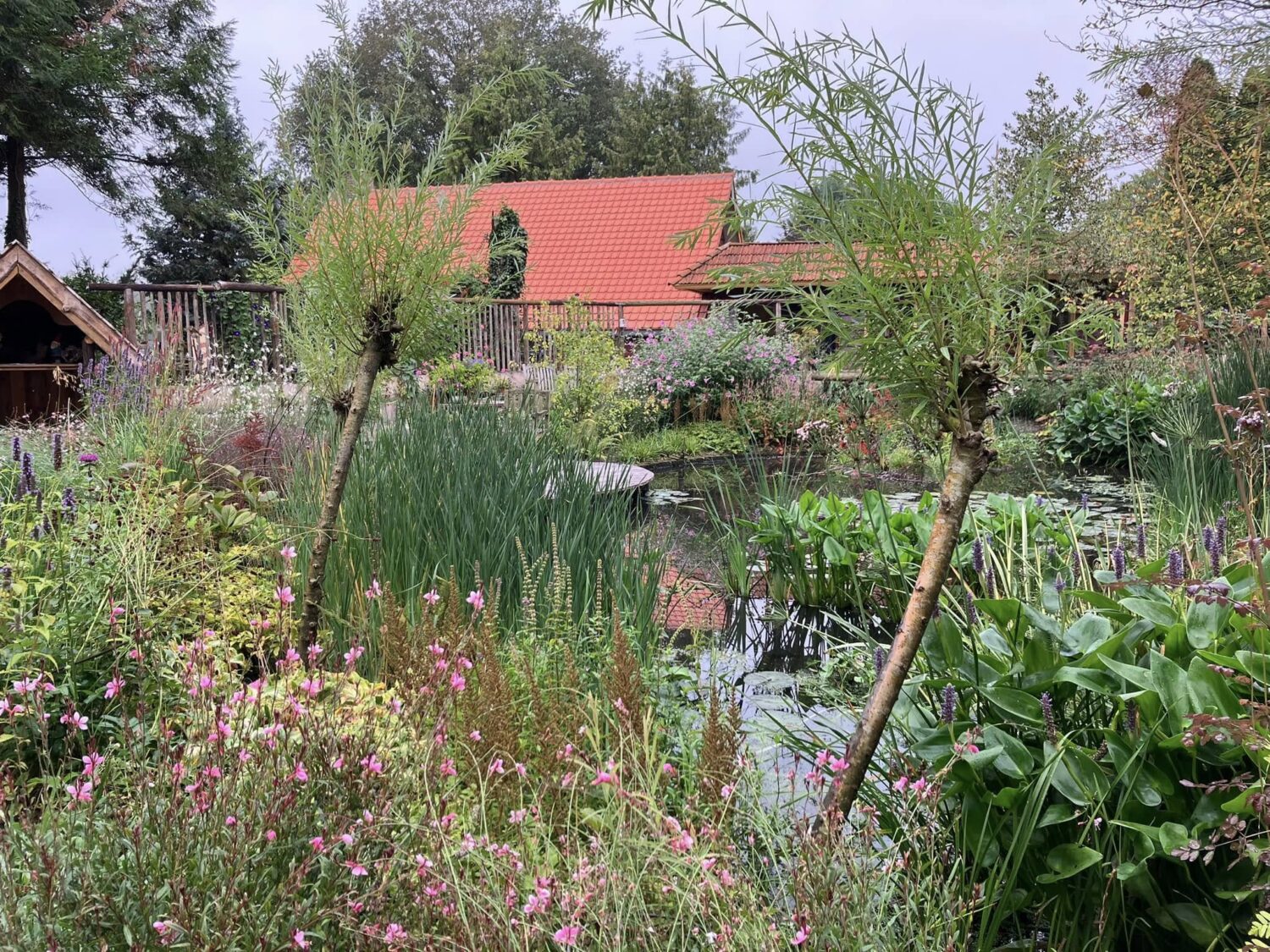 Op een plek waar eerst alleen een weiland was is deze bijzondere watertuin ontstaan. Voorbij de entree wandelt men over bruggetjes langs grote en kleine vijvers, waterloopjes en poeltjes. Er is overal een zeer dichte oeverbeplanting. Een eldorado voor kikkers, vlinders, salamanders, vogels en andere dieren. Verderop is er een meer gecultiveerd deel met bloemen borders. Sinds dit jaar is de tuin gedeeltelijk op nieuw aangelegd: Een heidetuin van ongeveer duizend vierkante meter!!