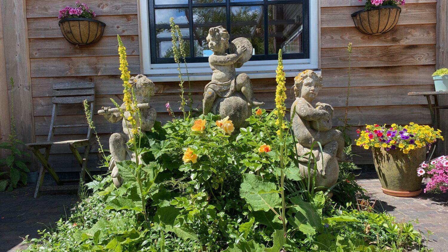 Aan de duinrand van Egmond liggen de tuinen van Roos Gevers en Peter Lassooy. De twee tuinen zijn aan elkaar gekoppeld en bieden totaal 5000 m2 tuingenot. Het voormalige nollenlandschap was de inspiratiebron voor de heemtuin. Het heuvelachtige terrein biedt noord- en zuidhellingen en daardoor een afwisselende bloemrijke vegetatie met o.a. grote centaurie en rietorchis. Er is een poel vol padden, kikkers en salamanders. Het bloemrijke grasland wordt een maal per jaar gemaaid, gecomposteerd en gebruikt voor de biologische groentetuin. De hele tuin is circulair. Verwacht geen aangeharkte tuin met strakke gazons. Er is ruimte voor verwildering en er zijn veel ‘rommel’hoekjes, die veel te bieden hebben voor wilde flora en fauna. Sinds enkele jaren staat er een valkenkast in de tuin en is het genieten van de torenvalkjes die hun kuikens voeren en de jongen die na verloop van tijd proberen uit te vliegen. De border is opgebouwd met éénjarigen, tweejarigen en vaste planten. Ook wilde planten vinden er een plekje. Een duinachtig stukje is aangeplant met siergrassen en wilde inheemse grassen zoals zandhaver. Een eikenhakbosje bestaat voornamelijk uit els, eik en es met daar omheen besdragende struiken zoals meidoorn en Gelderse roos. De kruidlaag bevat veel stinzenplanten zoals wilde boshyacinth, maar ook zevenblad, brandnetel, en fluitenkruid. Verder bosplanten zoals look-zonder-look en vingerhoedskruid. Er stroomt een duinbeek langs de tuin waar een natuurvriendelijke oever is aangelegd. Een heel ander beeld geeft de romantische patio met potten eenjarigen en heerlijk geurende klimrozen.