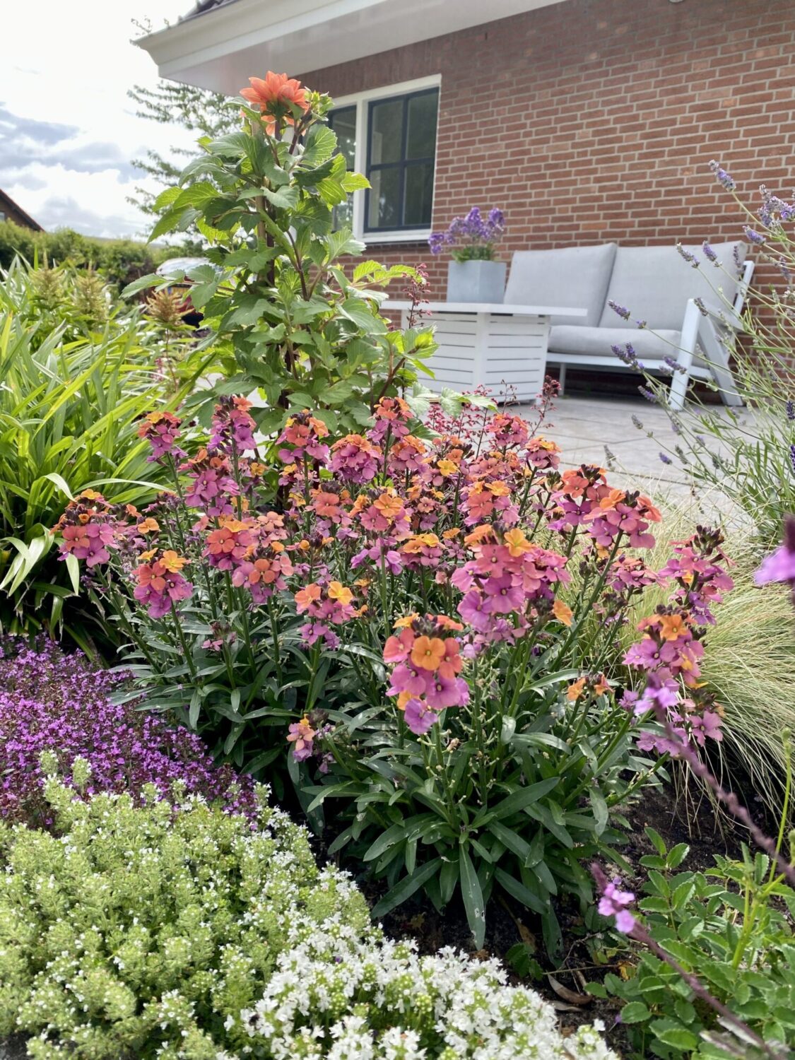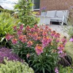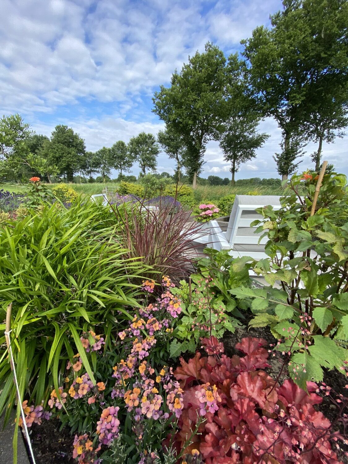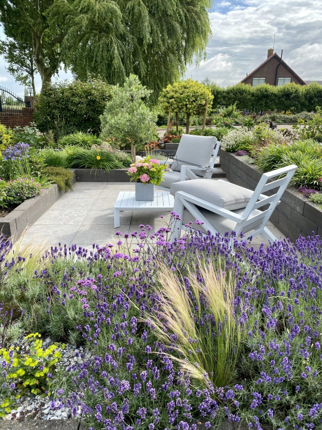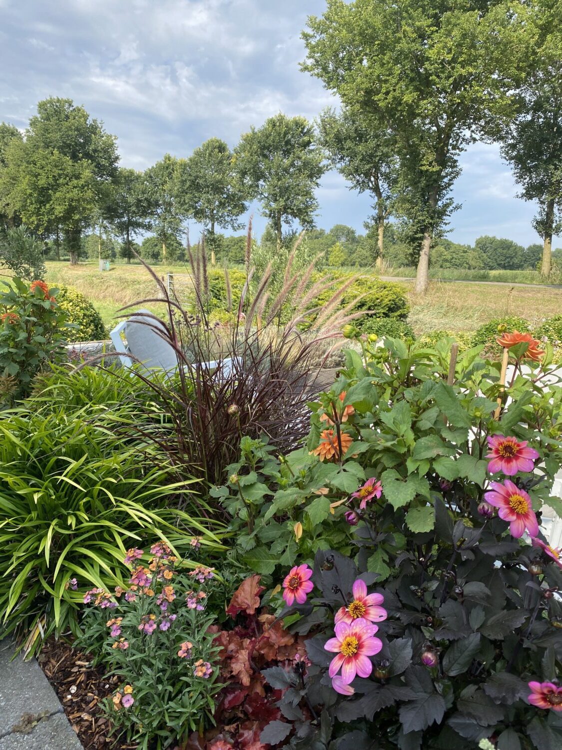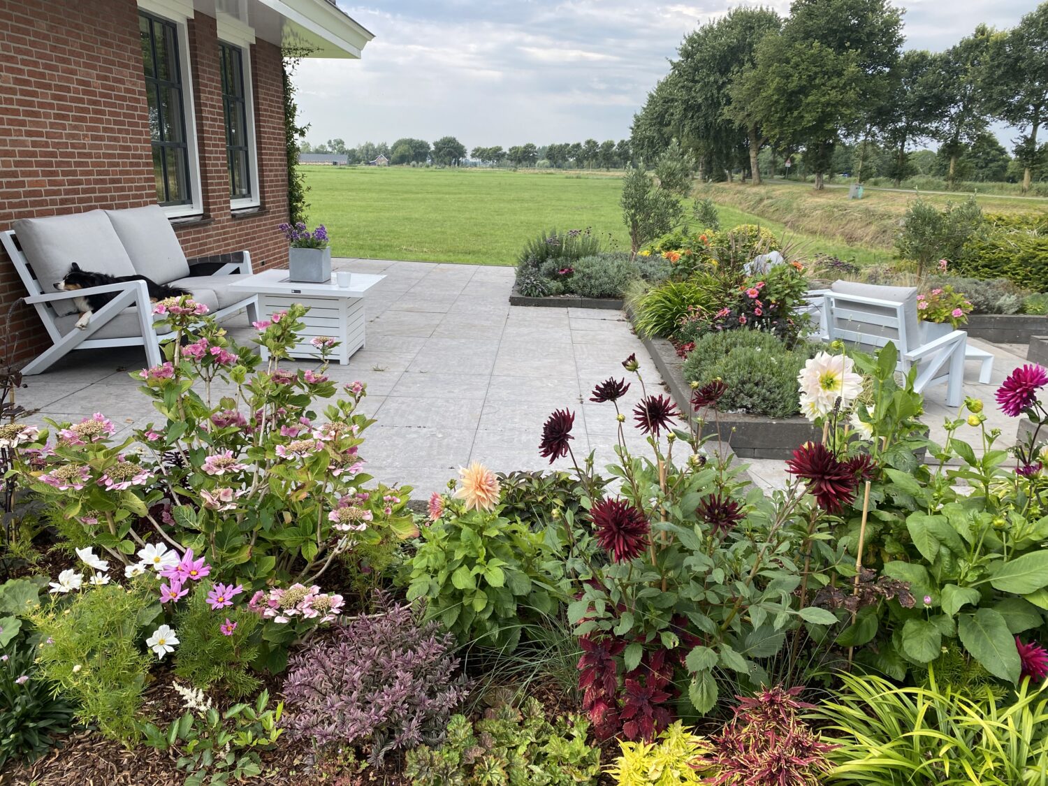 De tuin hoort bij een onlangs gerenoveerde woning in de stijl van een stolpboerderij. De tuin ligt aan een druk bereden fietsroute, dus drie jaar geleden besloten we er een lust voor het oog van te maken. Niet alleen voor onszelf, maar voor iedereen die erlangs komt.