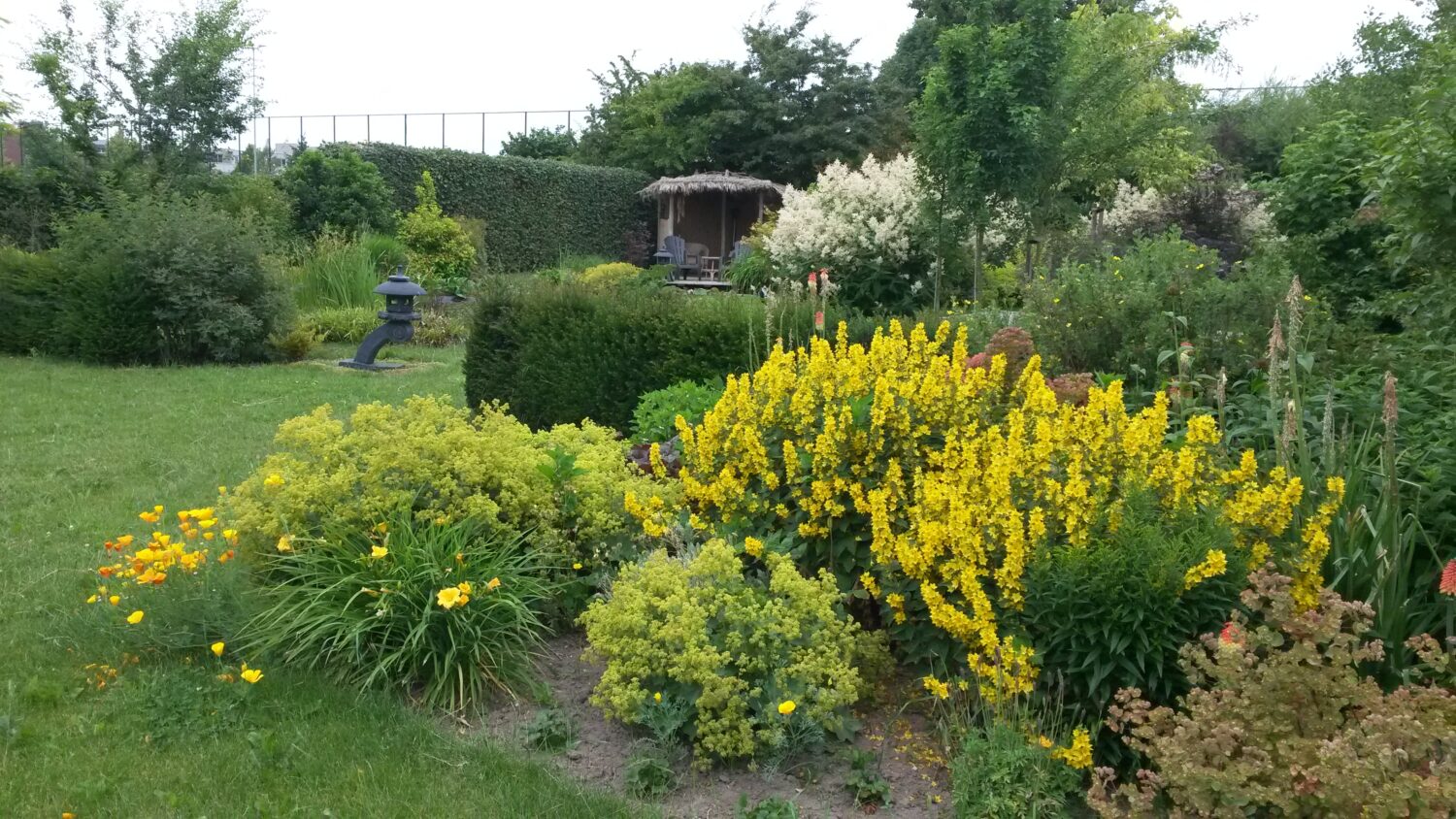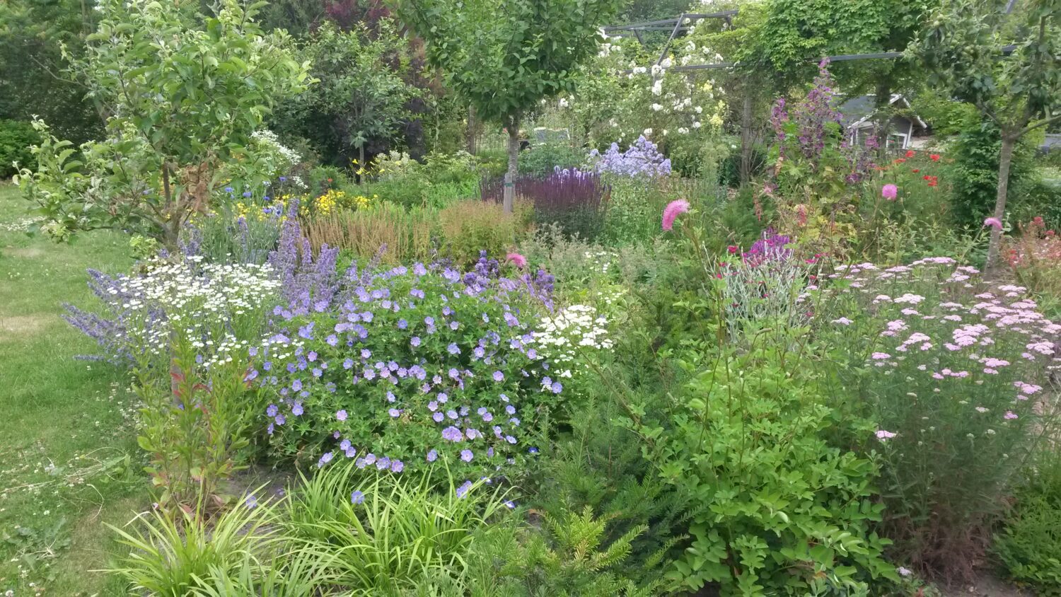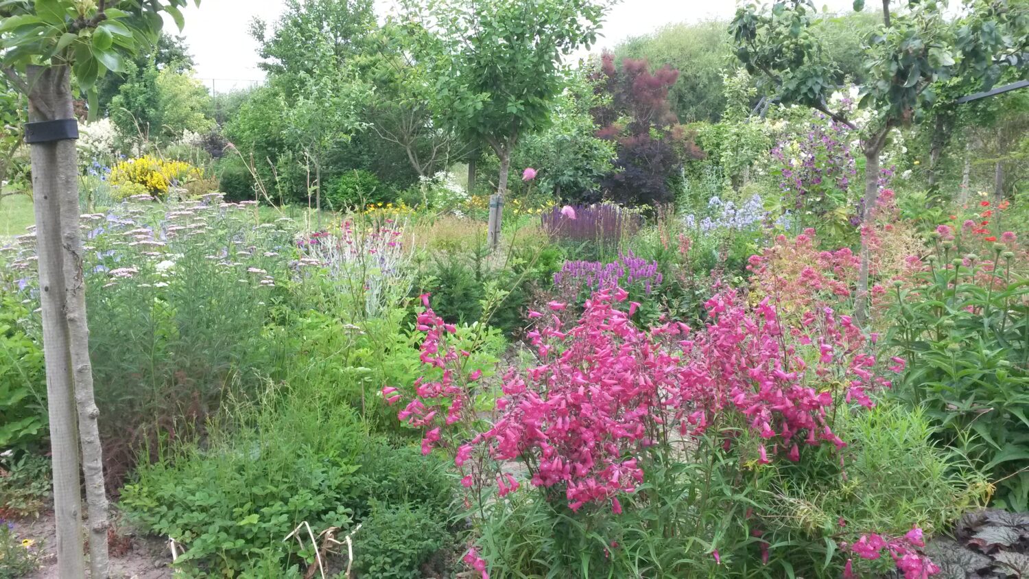 Daarnaast is er 12 maanden per jaar iets in bloei, zijn er bijzondere heesters en vruchtbomen, bloemen in allerlei kleuren, vijvers, een moestuin, een dichtbegroeid berceau en ruimte voor kunst.