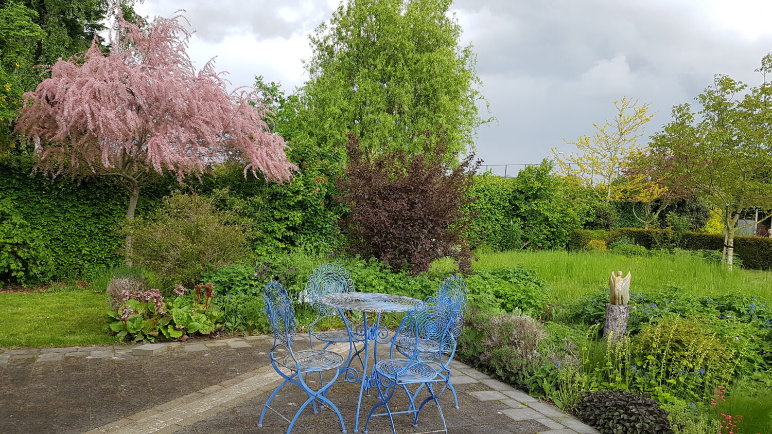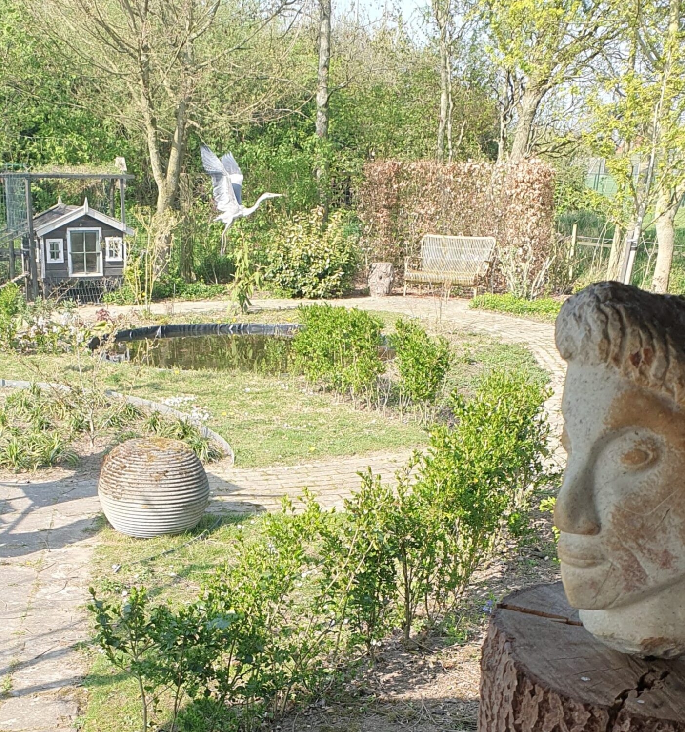 Onze tuin van 2400 m2 is meer dan alleen mooi, want ook aantrekkelijk voor al wat leeft. Vogels, vlinders, bijen, vleermuizen, egels, maar ook mollen en onze kippen, alles mag hier wonen of naar iets eetbaars zoeken.