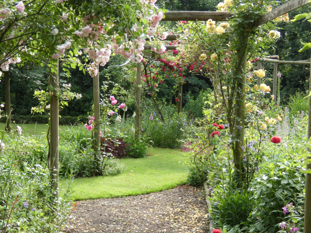 Een tuin waar je lekker in rond kunt wandelen met diverse zithoekjes en verrassende doorkijkjes. Ook zijn er meerdere vijvers en vele bloeiende borders.