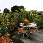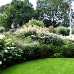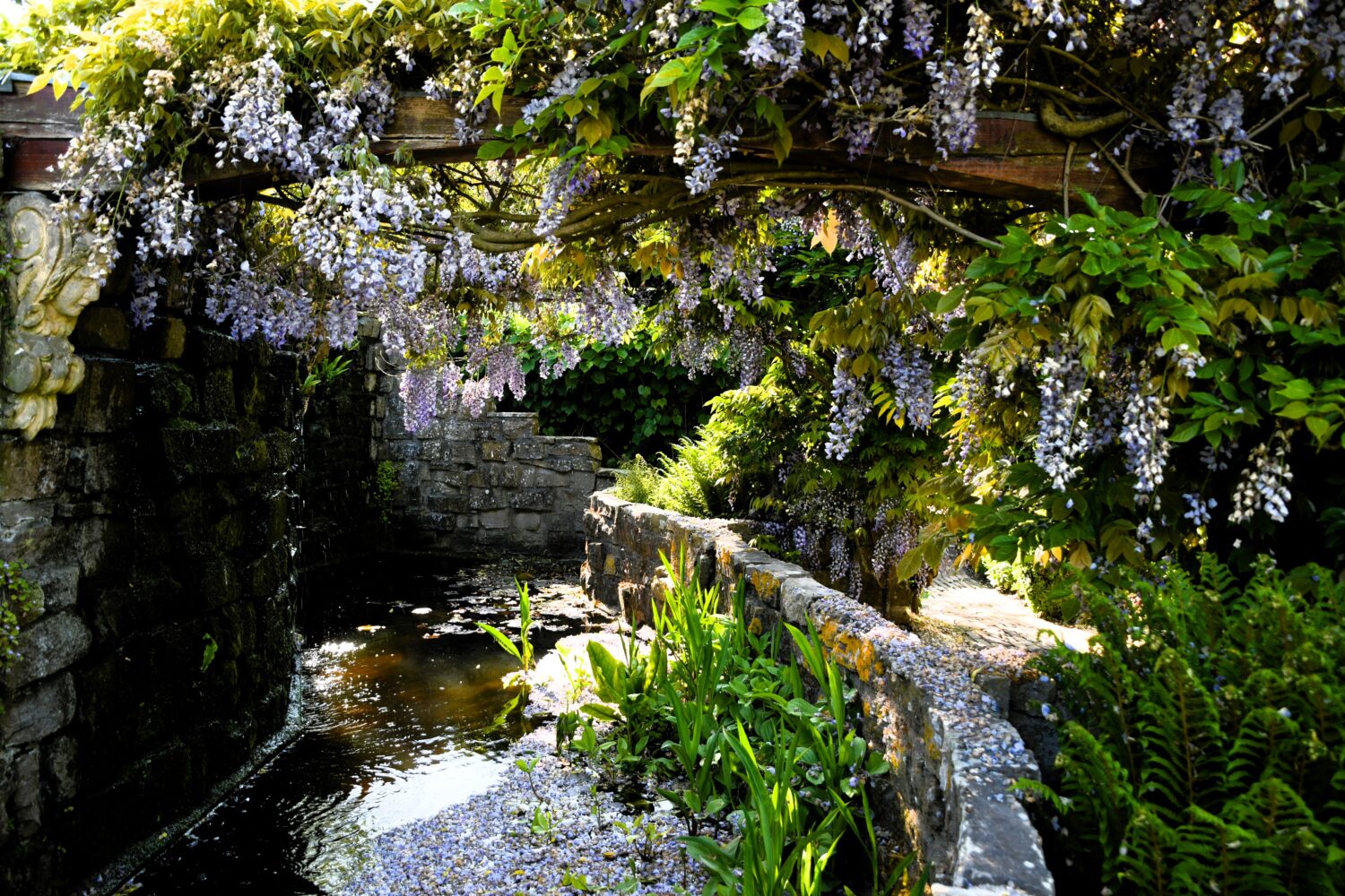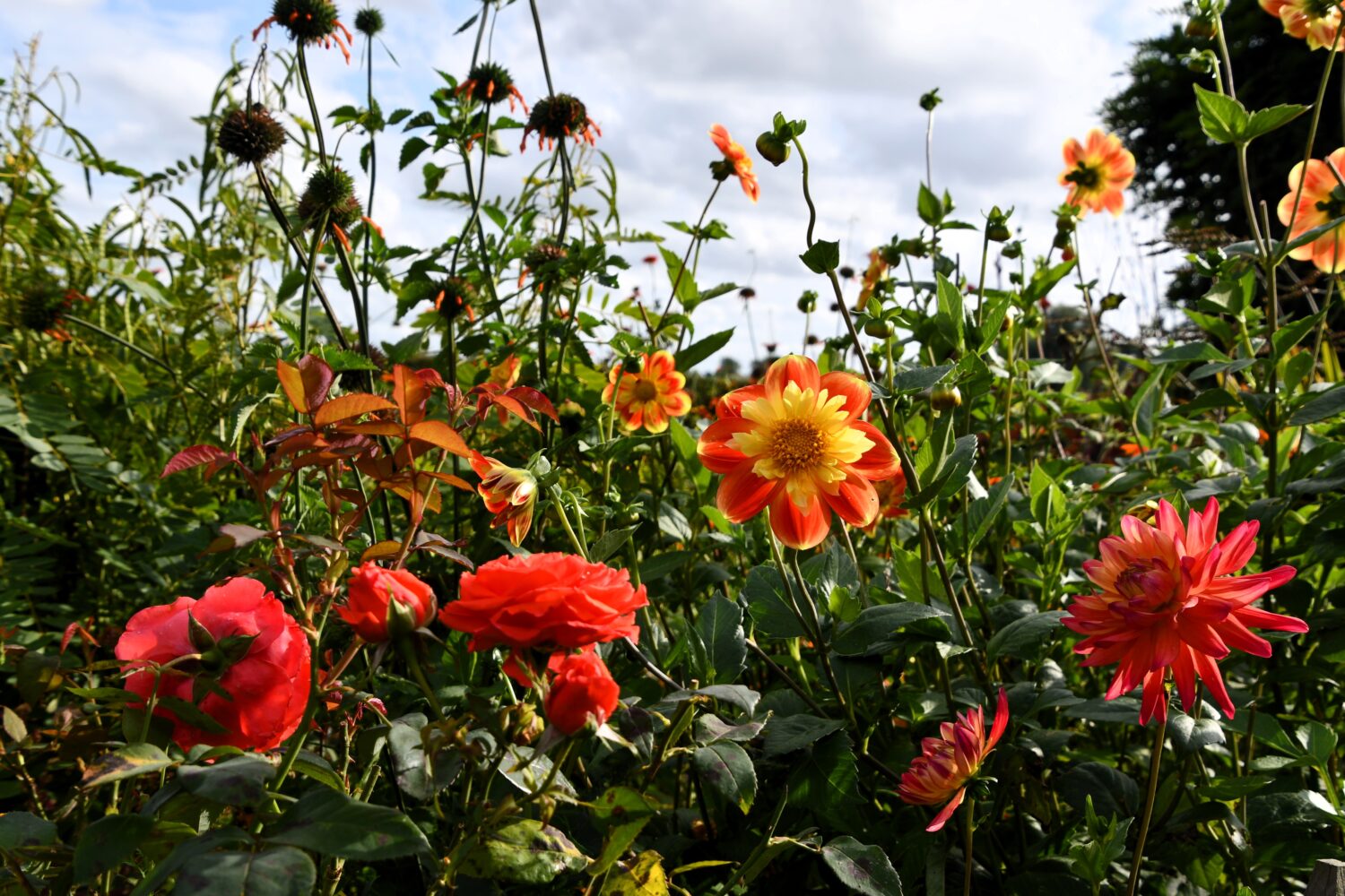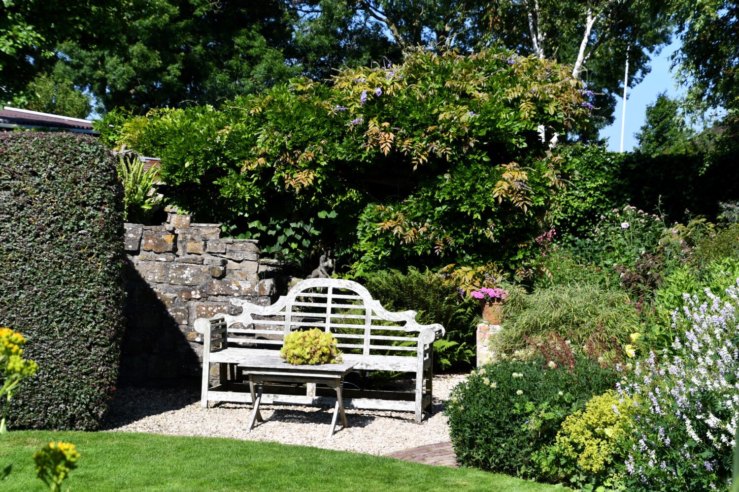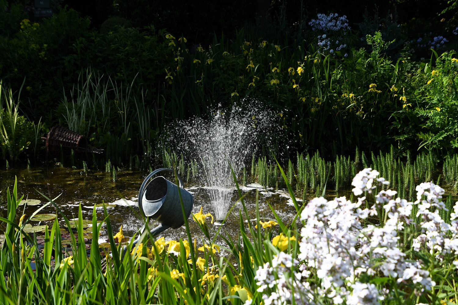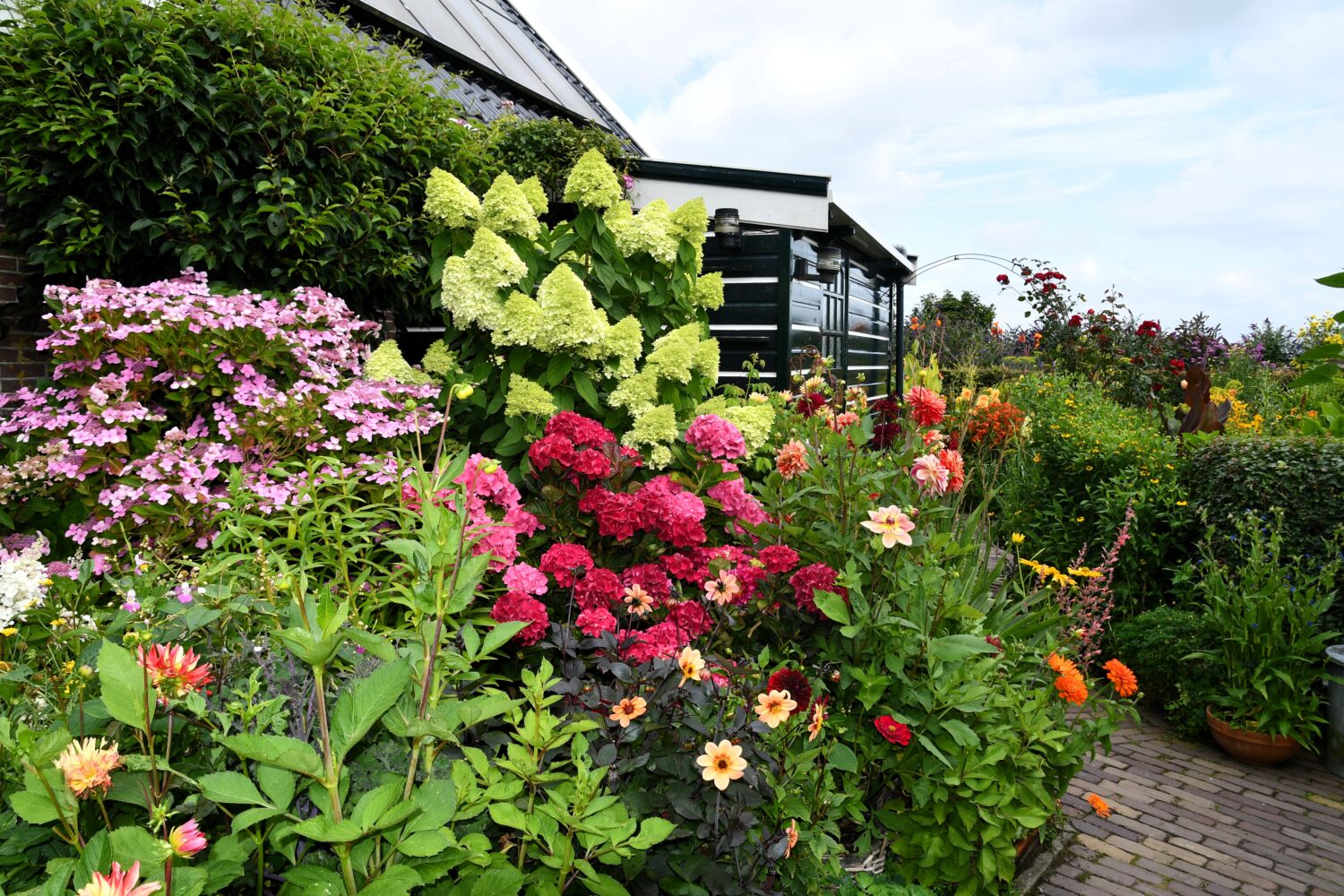 De tuin is gemaakt met een passie voor kleuren… Vele vaste plantenborders op kleur, Hortensia-hagen en geurende Engelse rozen, een natuurlijke folievrije vijver vol groene kikkers, de vlindertuin, de zandbak, tropische borders, de serene witte tuin, een sprookjesachtige watermuur – en nog veel meer…